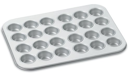 - 24-cup mini muffin pan made of heavy-gauge aluminized steel- Whitford Xylan nonstick interior and exterior for easy food release